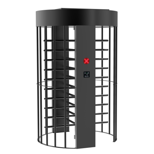 Barrier Movement Type: Full-height rotating turnstile for controlled pedestrian access.